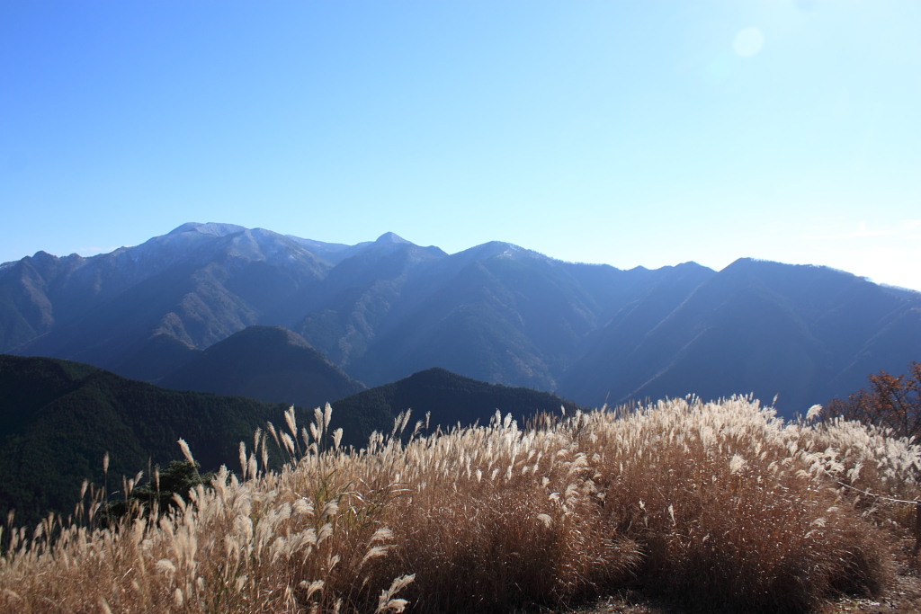 | 観音峯山は道もきっちり整備されており手軽に登れる。ススキが広がる観音峯展望台からは360度パノラマで迫力ある大峰山脈が望めるのでおススメ | ||||||