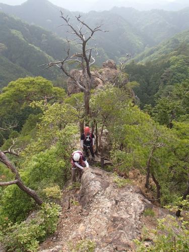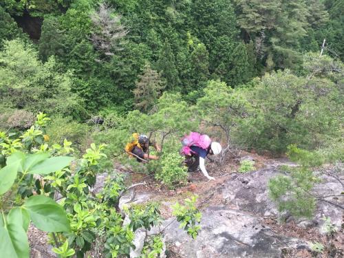 岩場の登りは結構ホールドポイントが高くS嬢がちょい苦戦していた