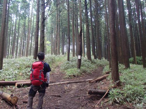 植林地帯がひたすら続く登山道になる