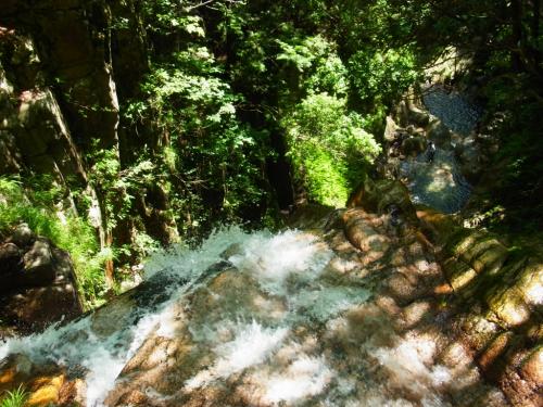今年第二回目の沢は八淵の滝にしました。 とりあえず、防水ケースに水が入って、撮影が不可となり 途中からひでぶーさんに撮影してもらいました。 前は3時間くらいかかったのに、今回はひでぶーさんとペアだから 早いのか2時間ほどで七遍返しの滝に到着しました。 この沢は最初は楽しいんだけど、貴船の滝からはあまりといった感じです。 とりあえず猛暑の中での沢は気持ちよかったのは間違いないけど、 下りが登山道とちょっと消化不足? とりあえず、まだまだ夏は始まったばかりなので沢行き倒したいです。