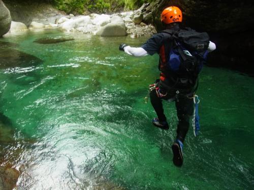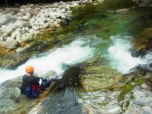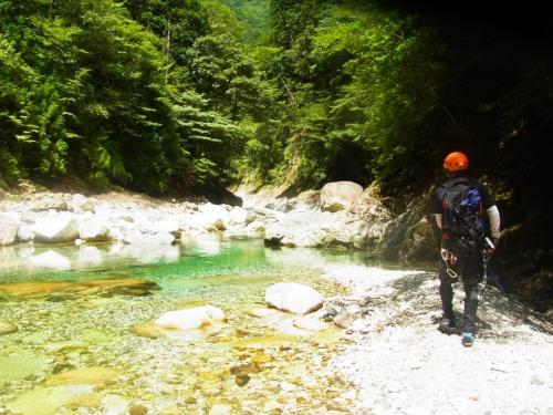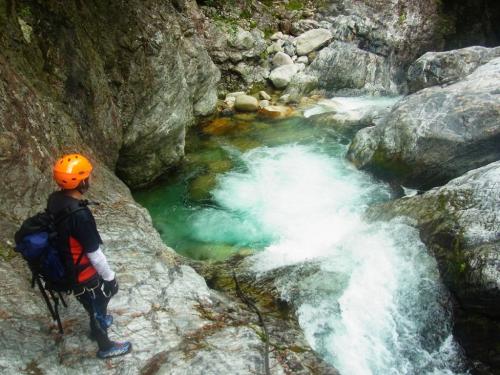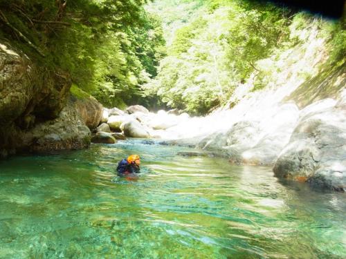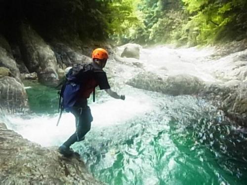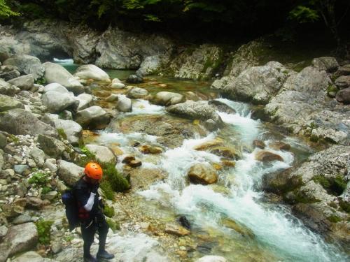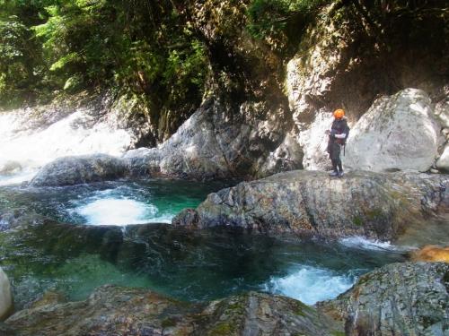 某ツアーのコースがどんなものなのか確かめにいくべく前鬼川を下流へ下っていきました。正直、消化不足で物足りない感じはしましたが、コース的には初心者向きの遊びコースではないでしょうか。水がやっぱ綺麗なのと飛び込みやらスライダーやらできるのでそれは満足です。まあ、こんなもんでしょうという感じでしたが、ちょっとは遊べたのでOKです。ただ、水量がもう少し少なかったらもっとスライダーとかして遊べたかもしれません。