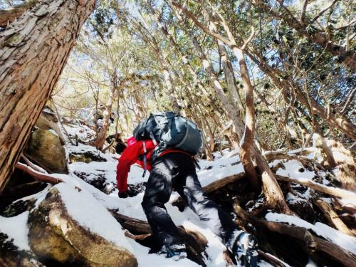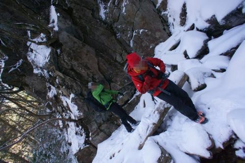 途中、持ってきたチェーンアイゼンのチェーンが切れて、急遽、えのえのさんに六本爪アイゼンをお借りしました。
