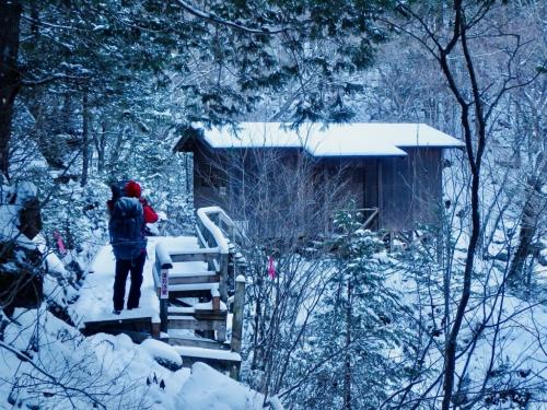 下ったところにあった小屋。ここは入れませんが休憩しました