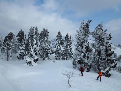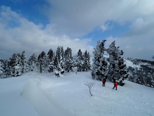 念願の氷ノ山に行ってきました。仕事が多い中、24日だけはお休みをいただきなんとか行くことができました。天気をみながらで決定したのは22日の木曜日。ゲレンデトップに到着したときは天気はしっくりこなかったものの、稜線はちゃんと見えていました。三の丸避難小屋に到着した時、すごい風が吹いていてこのまま進むか相談。晴れ間がでてきて風がおさまってくる感じなのと、このくらいの風だと歩けるだろうということで先を進みました。風はあるものの視界は良好で青空が広がりモンスター予備軍が姿を現す。これなんです、待っていたのは!!!と撮影をバンバンしながら進んでいく。そうこうしているうちにあっという間に氷ノ山頂上にたどり着きました。念願の氷ノ山の登頂です!!!これまで敗退ばかりだったので大満足!!頂上の避難小屋に入り飯を食っているとまたもや風が強くなり、だんだんガスってきました。このまま氷ノ山越えのルートで下山を予定していましたが、この天候で知らない道を進んでいくのはどうかと思い、トレースも残っていたので結局ピストンで戻ることにしました。三の丸避難小屋に戻ってきた時はすでに雪も降ってくるわ、ガスってホワイトアウト状態になっていました。さすが日本海側の山、天候がコロコロ変わることを身をもって感じました。ゲレンデトップまで戻り、ゲレンデの左側を歩いていくが、これが一番今回しんどかったかもしれません。横でスキー滑走している姿をみてうらやましくなりながらのゲレンデ下山になりました。下山後は山崎インター近くの王将で飯を食い事故渋滞を抜けて帰りました。