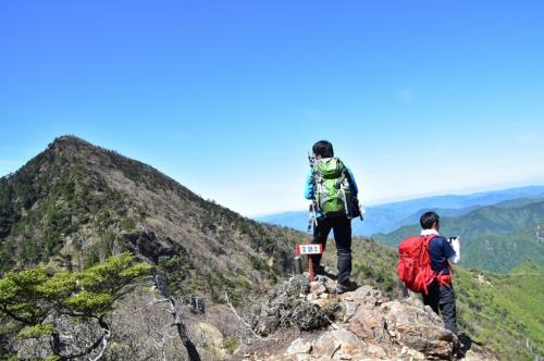 ここで奥駆道から一旦離れて孔雀岳の山頂に行く