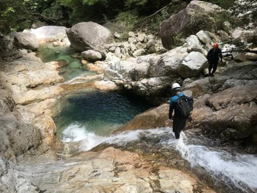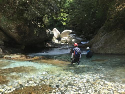 今回は奥の斜4m滝まで行った。蛇がいたんだけど、ひでぶーさんが水ぶっかけて横のラインまで持っていき、スライダーする