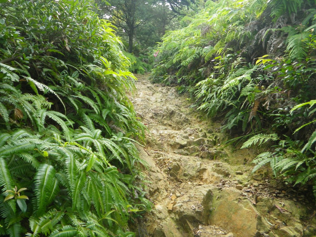 樹林帯の中に入ると暑さはマシ。この山はシダ植物が多いけど、やはり気温の関係なのかな!?