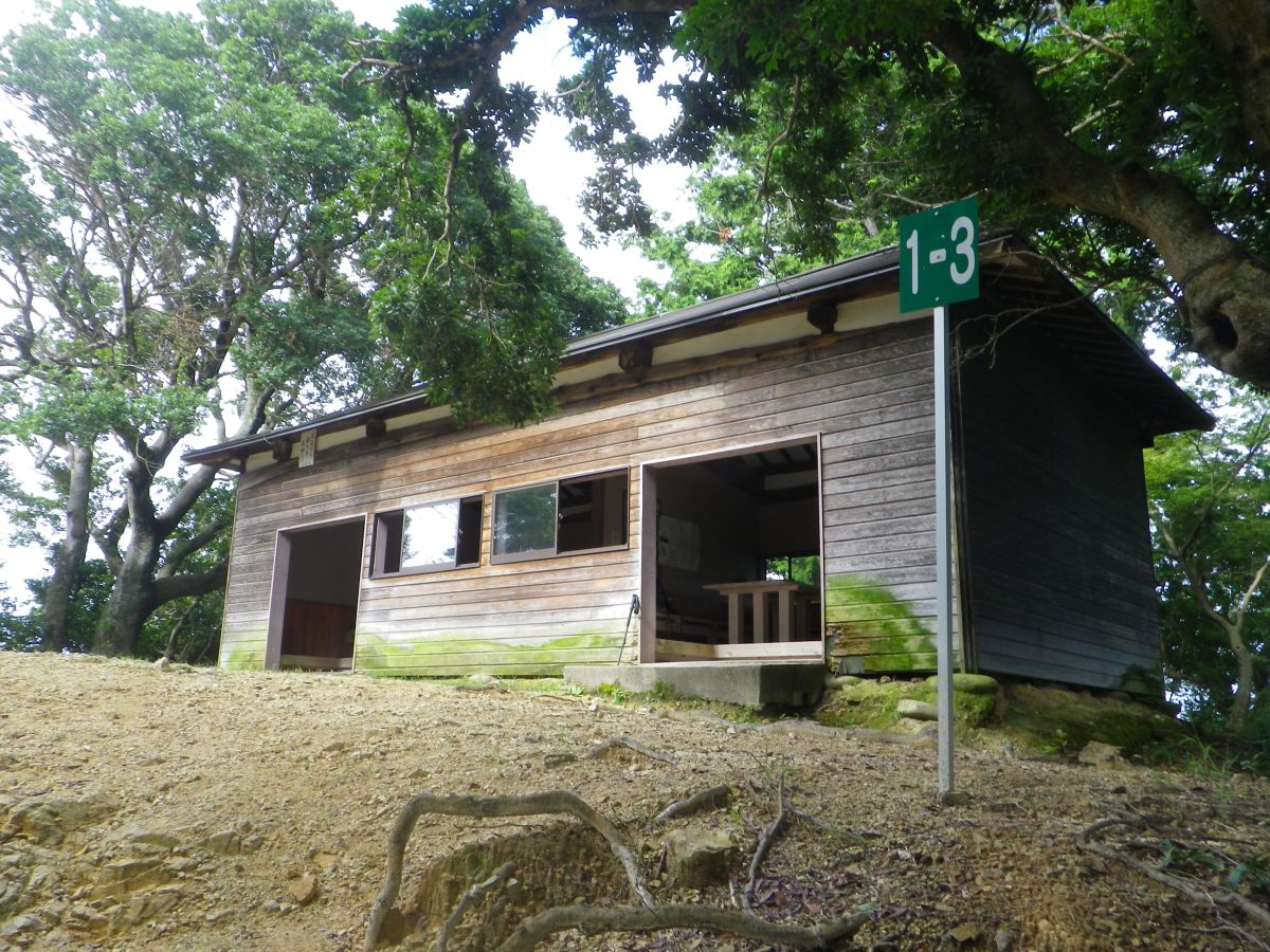 雨山城址の山頂にある小屋に到着。コースタイムも標準的だったしちょうどよかった