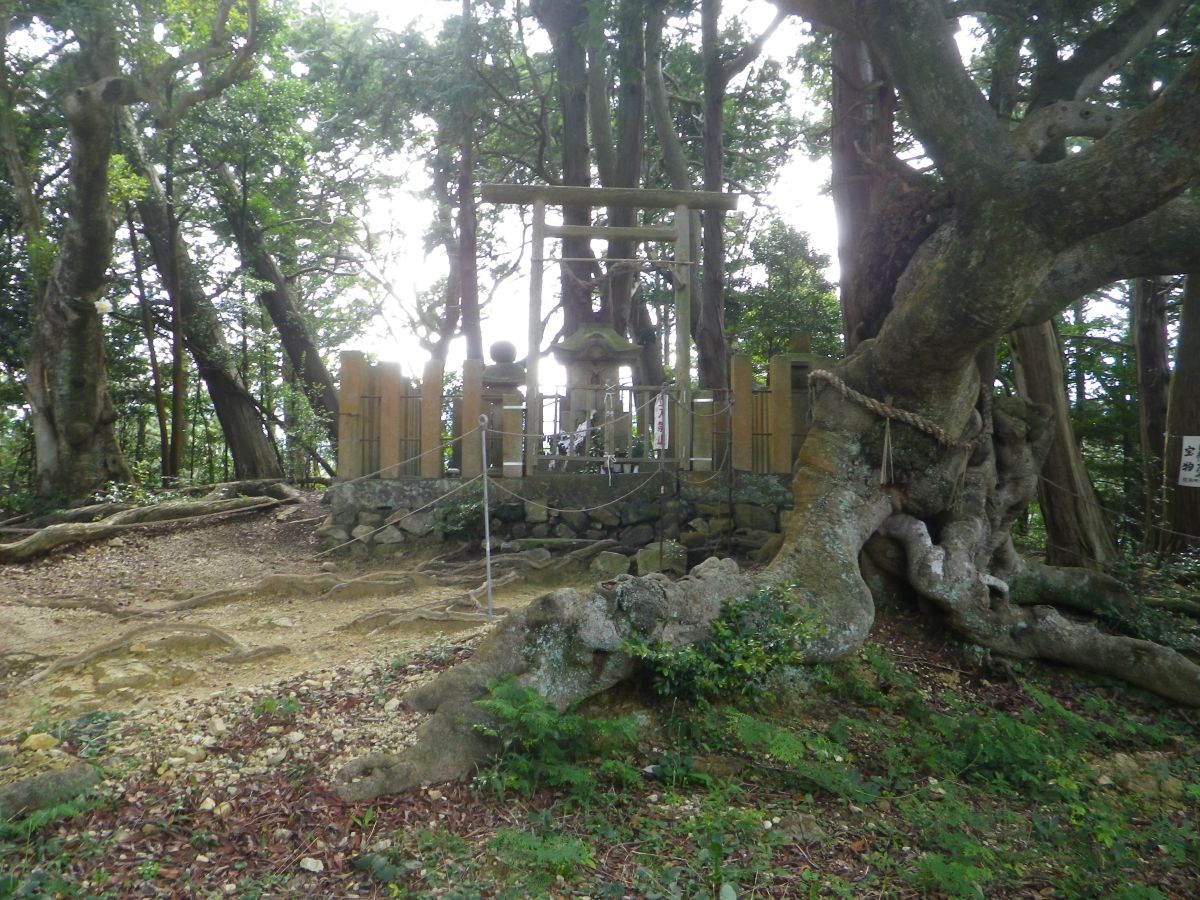これは山頂でありながら雨山城址で何かが祀られている。木のところも入ってはいけないようだ