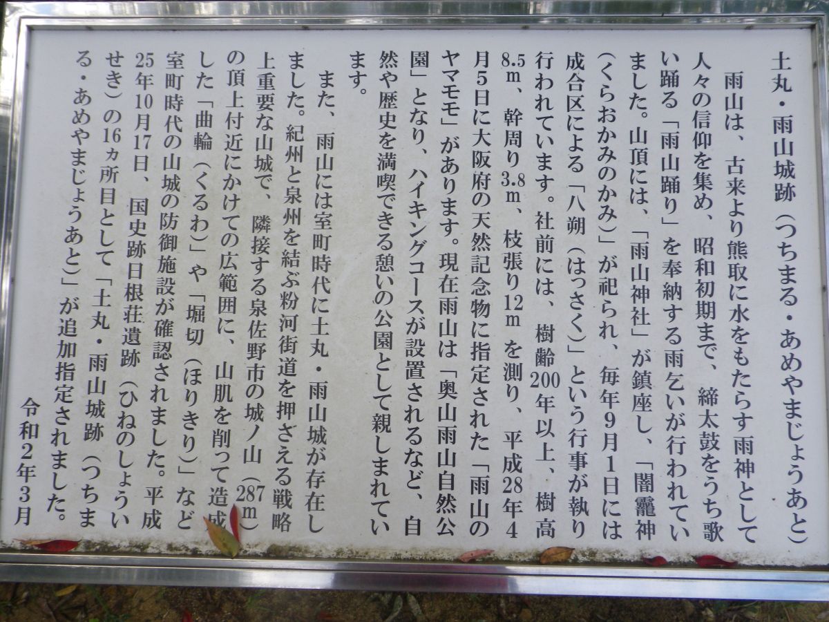 最近になって建てられた看板みたいだけど、雨山城跡のうんちくが書いてあった