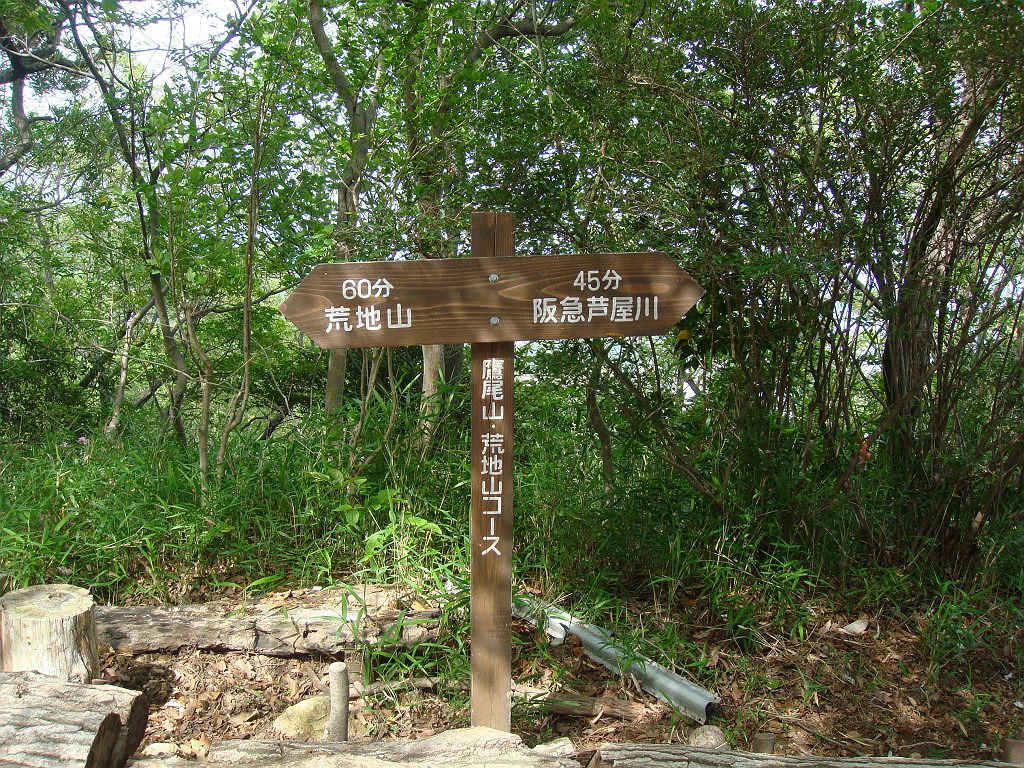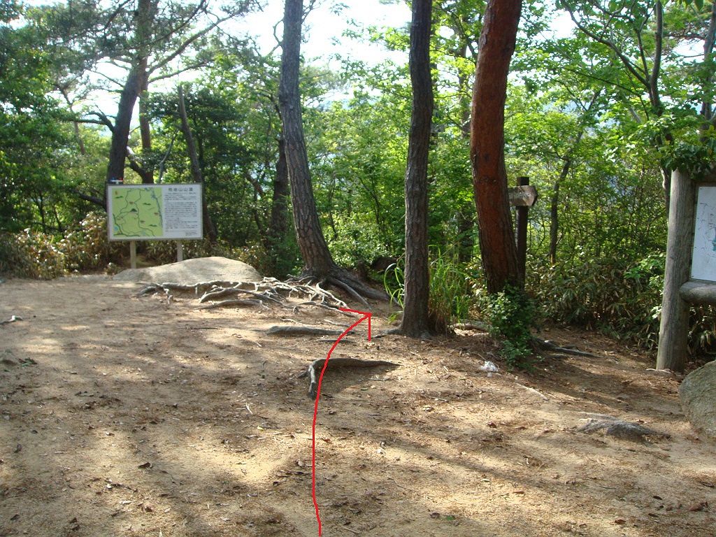 荒地山の山頂からの下山は矢印の方向になる