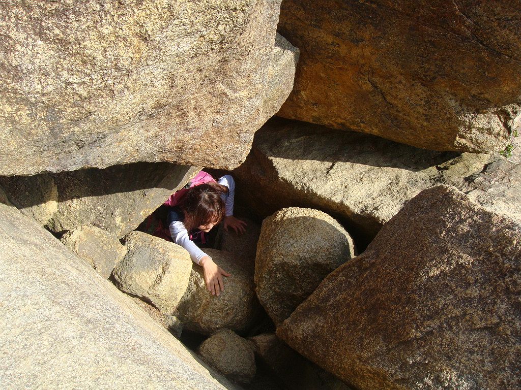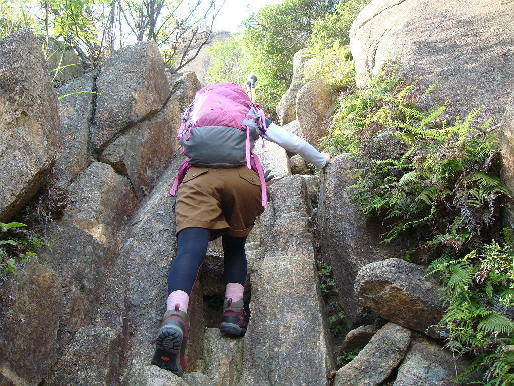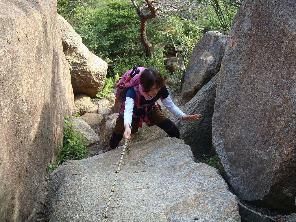 岩梯子を登るS嬢
