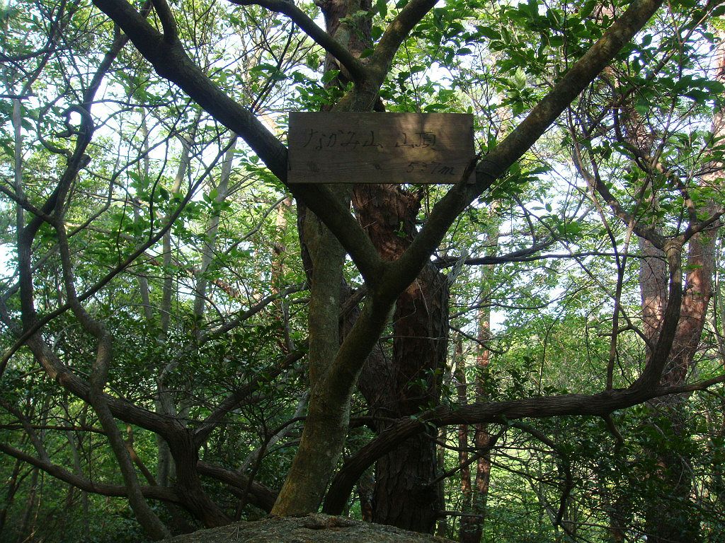 下山途中のピークにあった”なかみ山 山頂(537m)”のプレート。こんな山ははじめてしった
