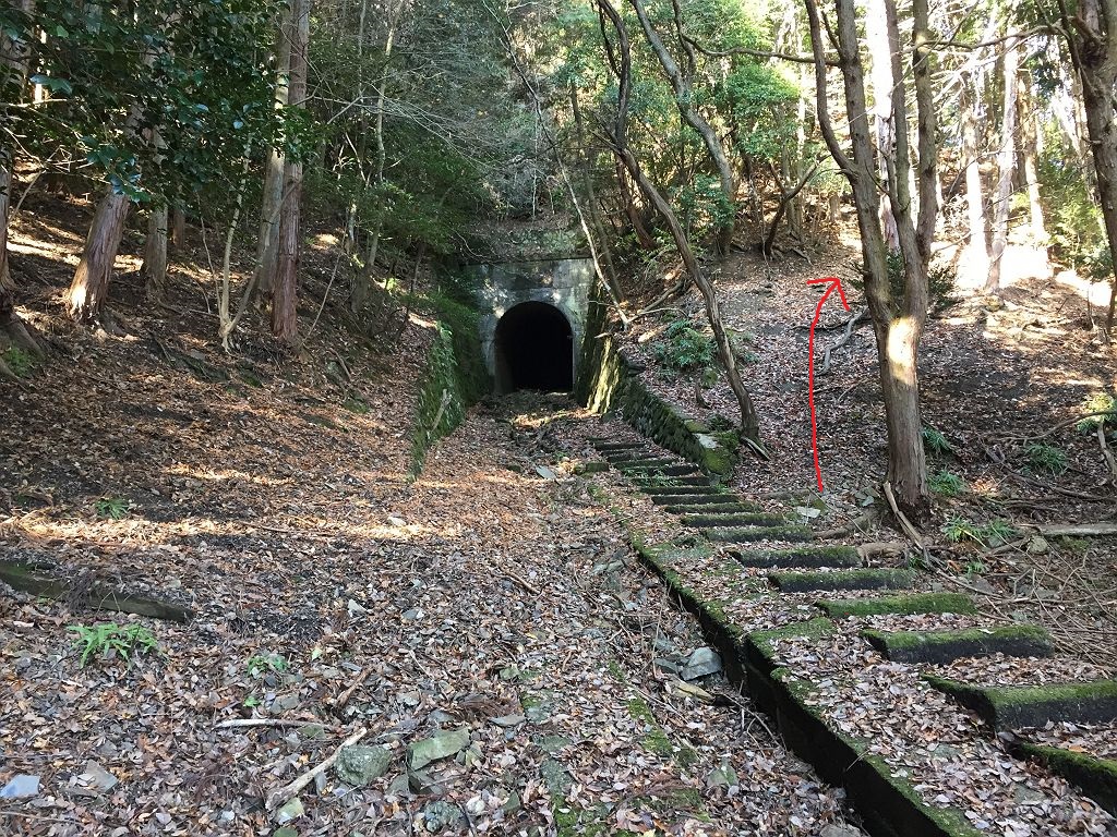 ここから廃線跡。立入り禁止とあるが、自己責任とのこと