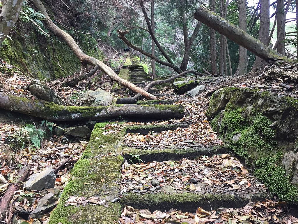 表登山道は階段だらけ。まるで金剛山の千早本道を思い出す