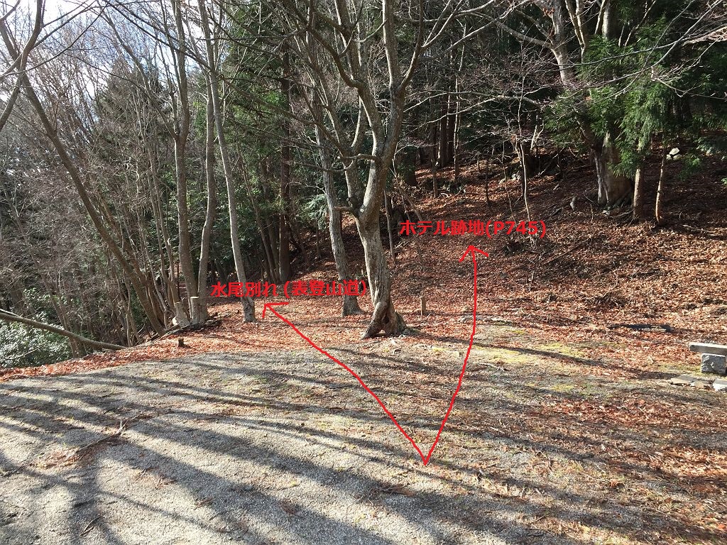 ここですぐ水尾別れまでいってもいいのですが、せっかくなのでP745のホテル跡地もいってみる