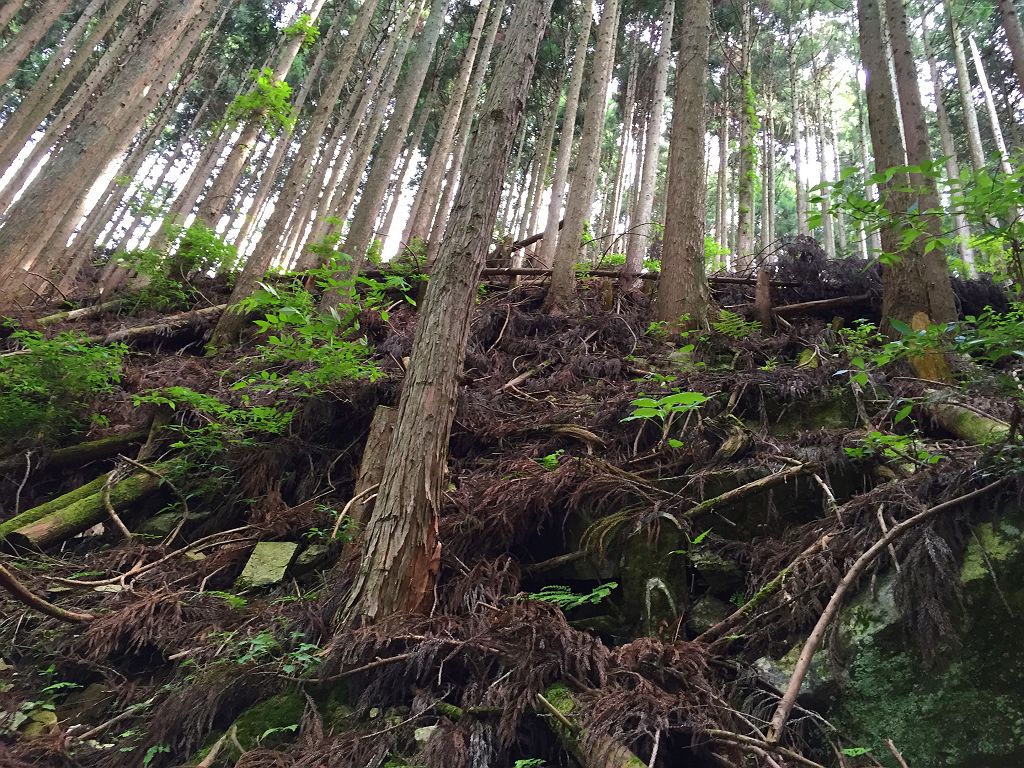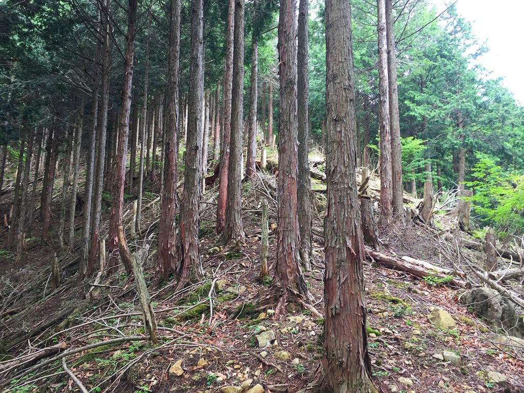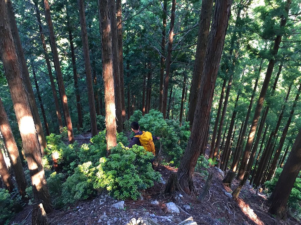 ここから本格的な入山。植林地に入っていきます