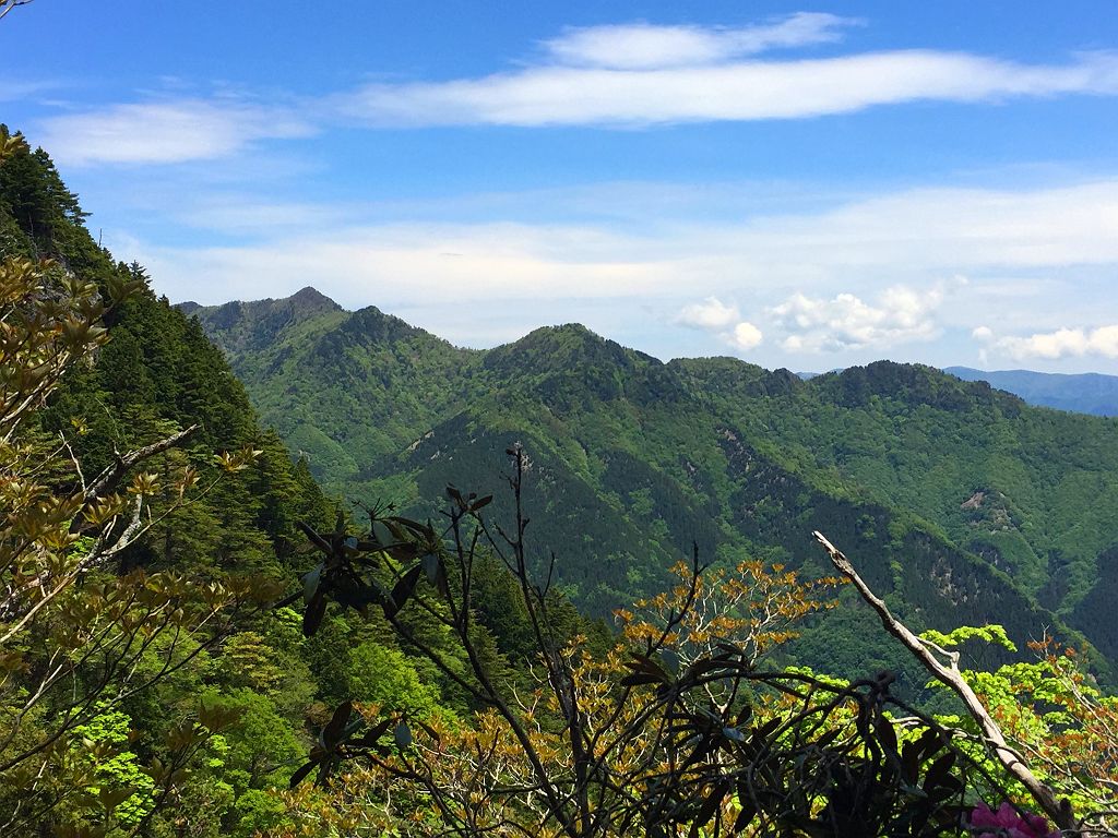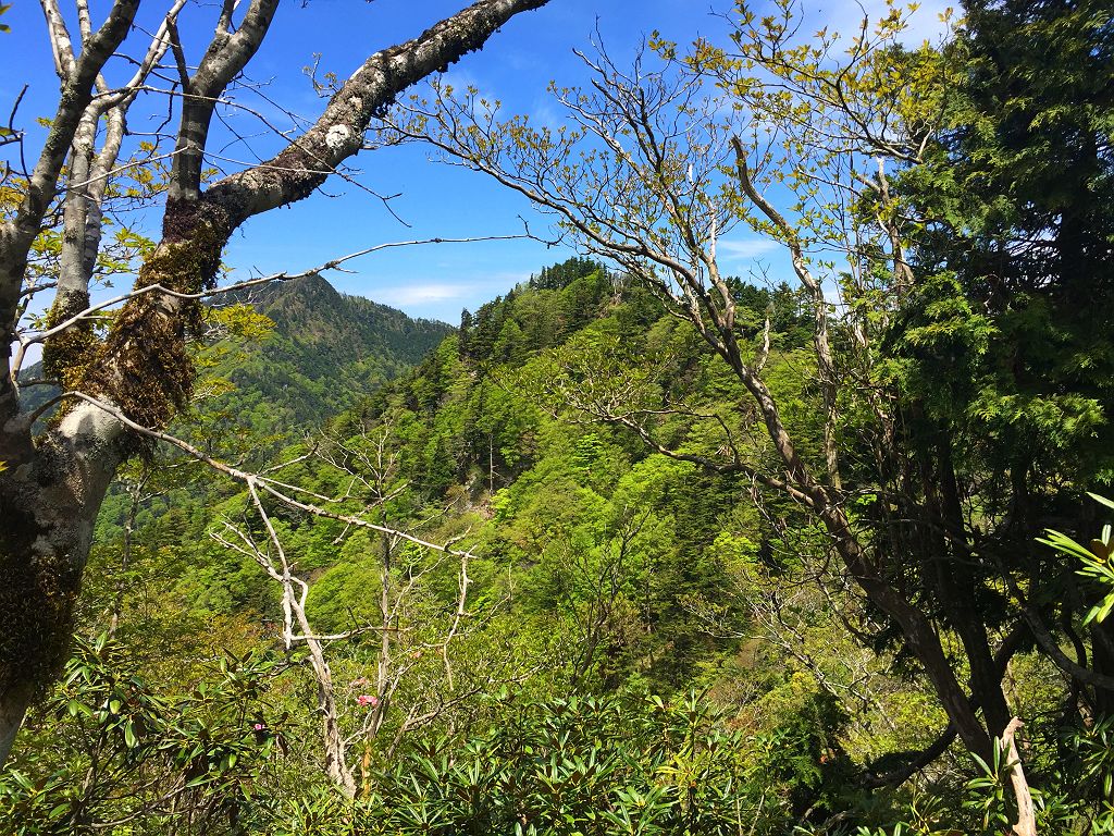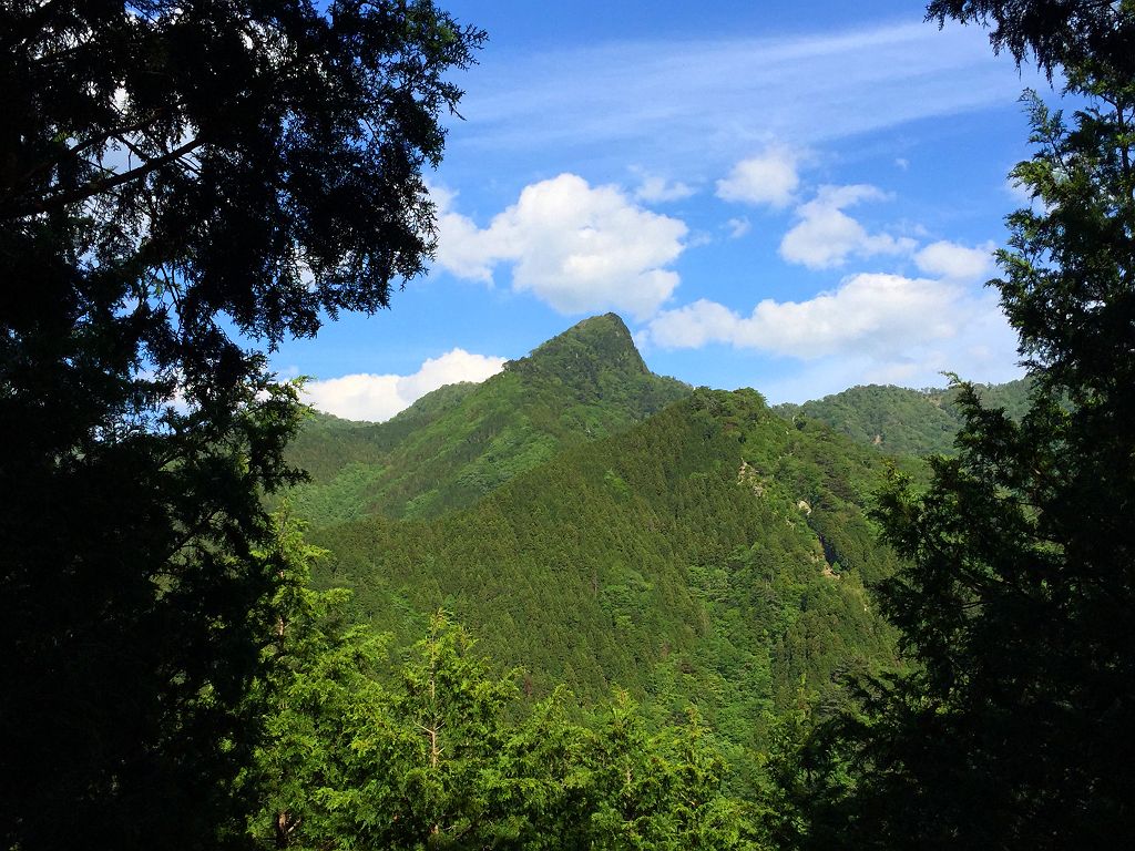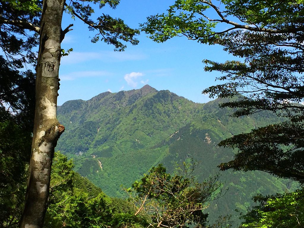 樹林の間から綺麗に大普賢岳が見えた。カッコいいね~
