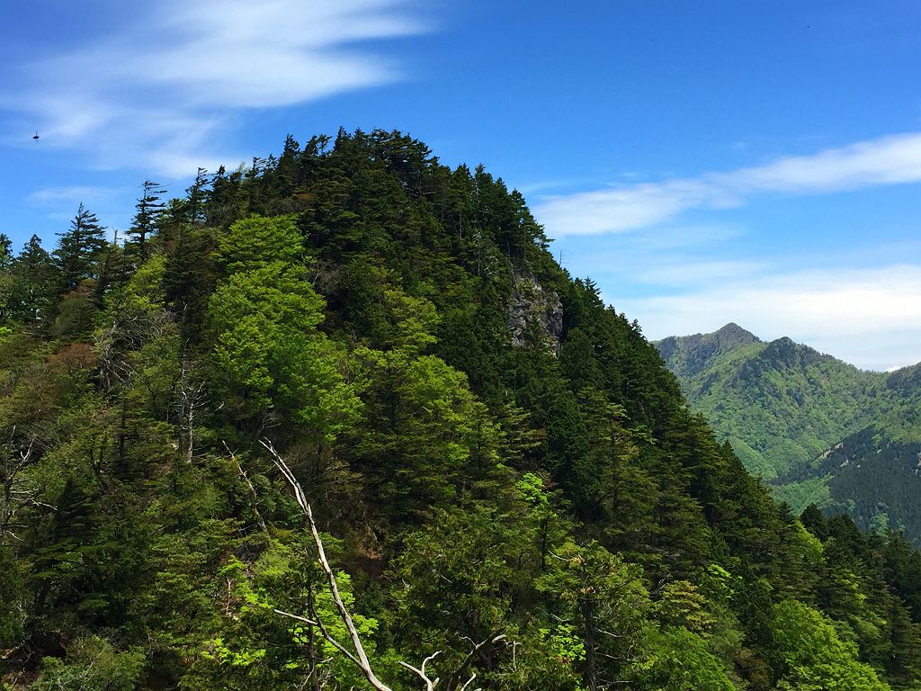 ラスト、樹林の間から綺麗に行者還岳が望める場所があった