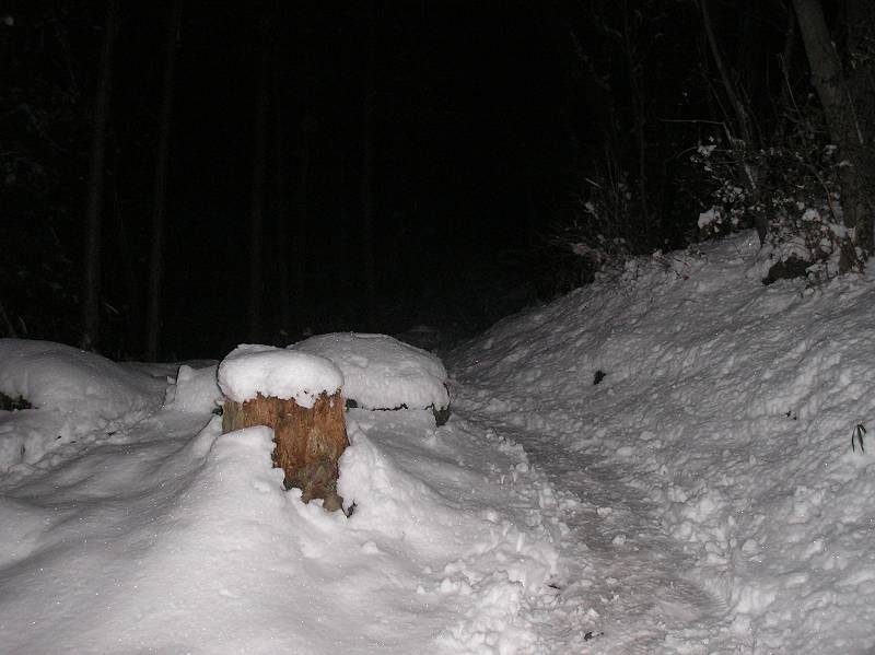いつものように積雪とぼくらの広場の夜景を撮影してみる。手前の積雪も入れないといけないけど難しい