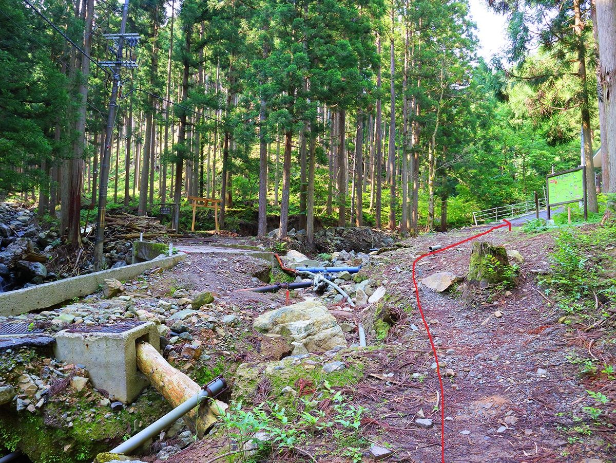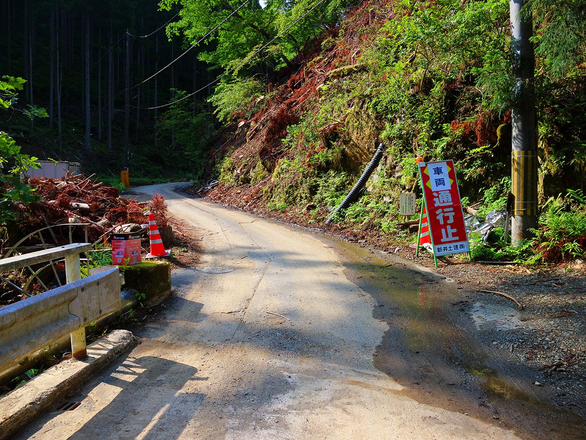この先は車両通行止ということだけど、道路が崩落していて工事をしていた