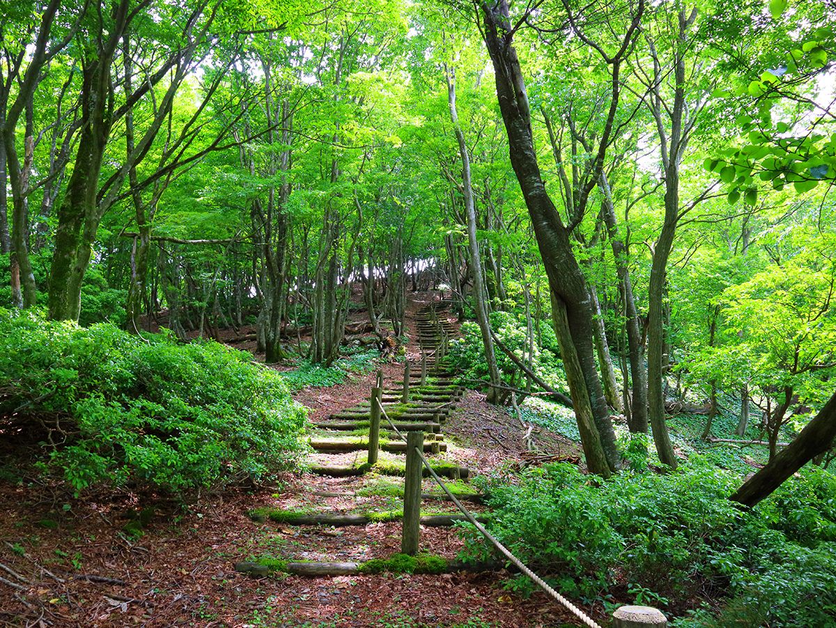 長老ヶ岳への登り。階段が続くけどそんなにしんどくない。この山は山頂までしんどいところはなかったように思う