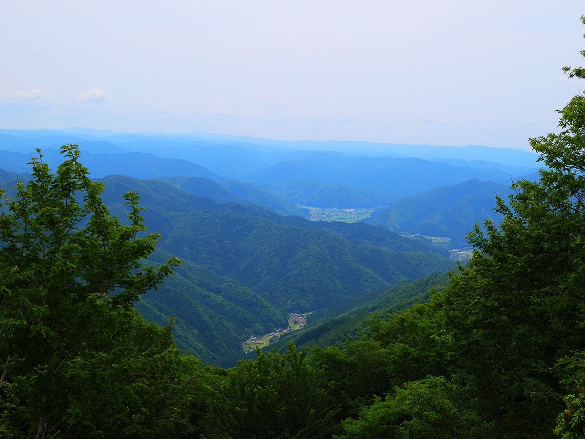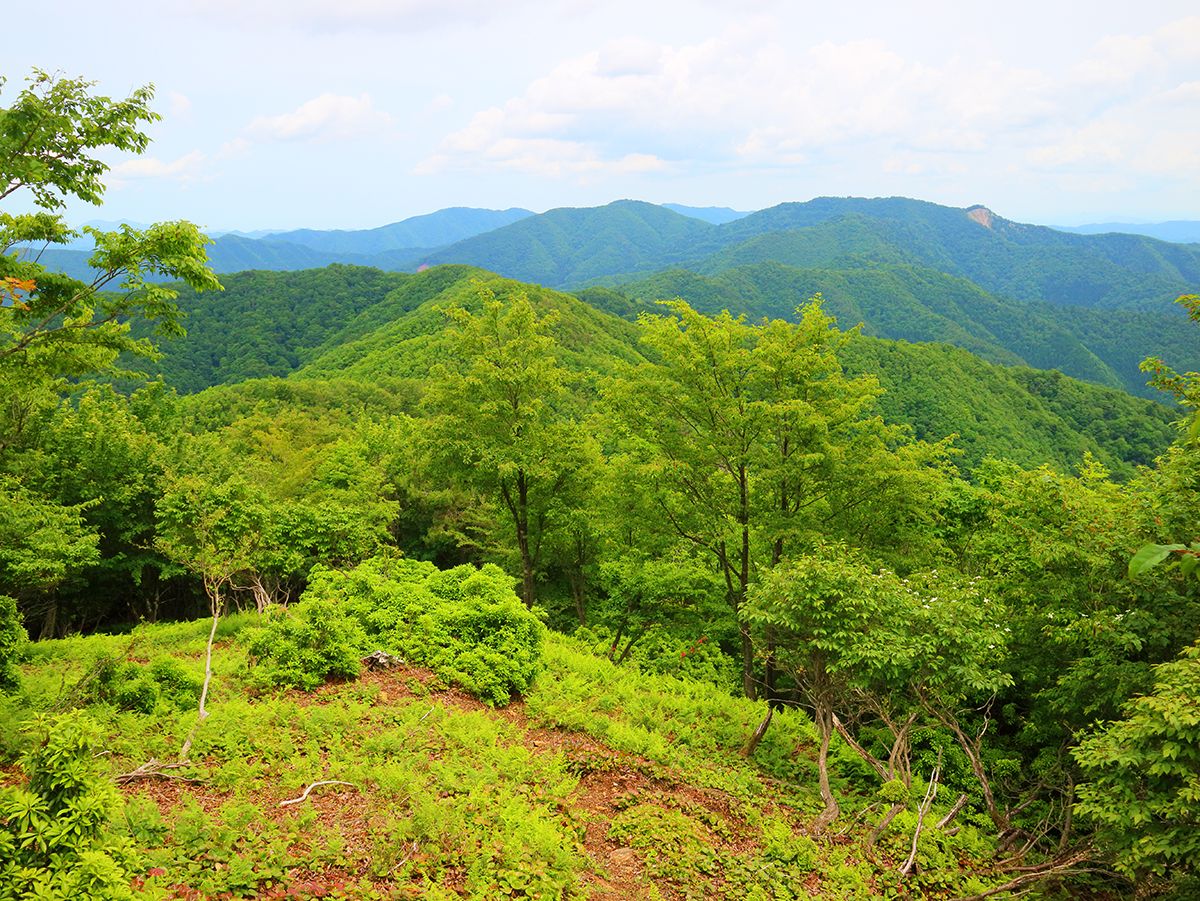 長老ヶ岳から少し下ると東側の展望がひらけていた。このまま尾根道を北東へと歩いていく