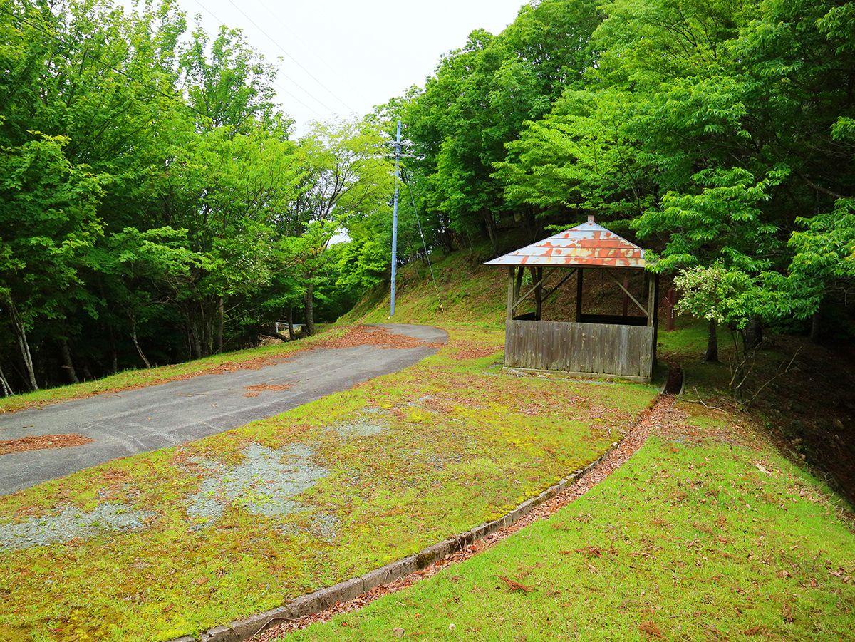 管理道の途中にも東屋があった。登山者のためなのか。でもこの林道を使って登ってくる人なんているのだろうか!?