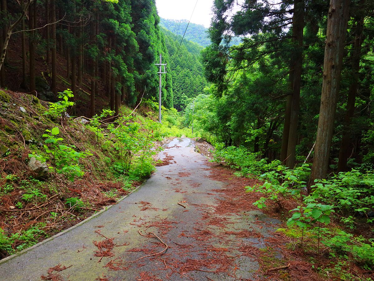 覚悟はしていたけどこの林道も長い。ひたすら面白くない道を下る。唯一、暑くなかったことと下りだったことが救いかも