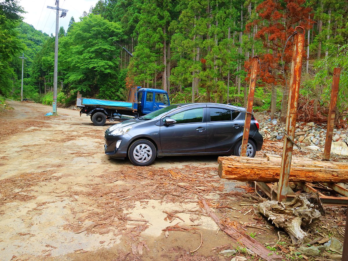 林道の終点だと思われる広い場所にたどり着いた。朝早かったので暑くはなかったけど少し疲れた