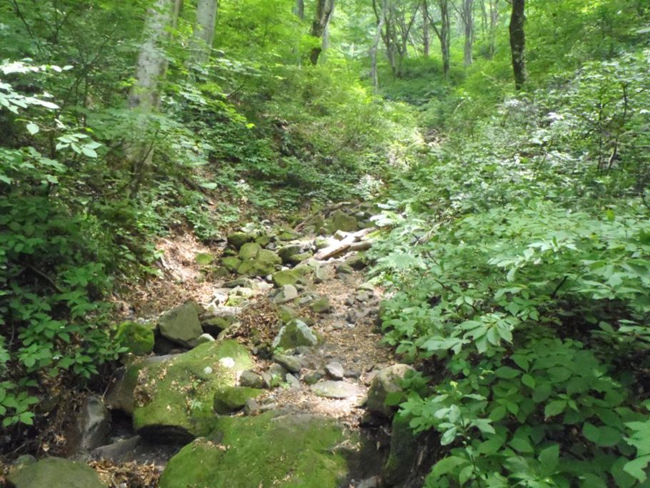 水のない沢沿いを登る