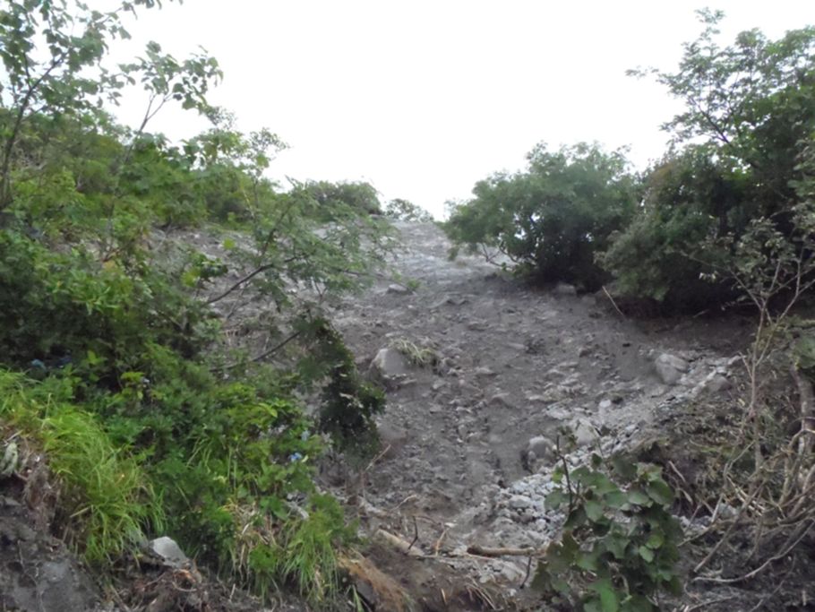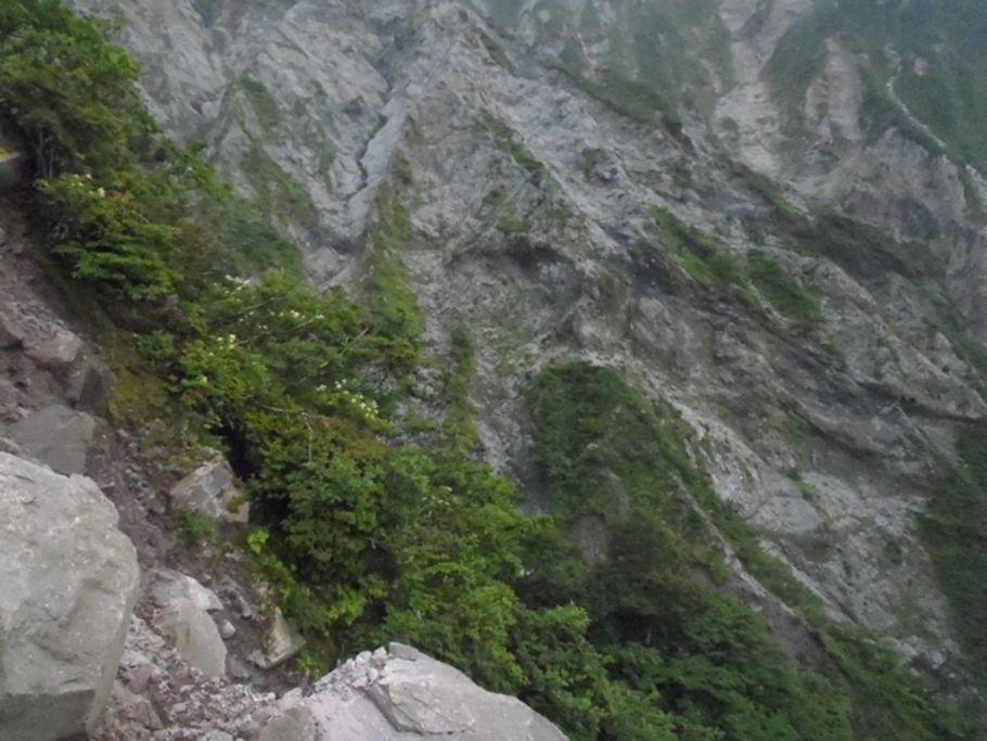 歩くごとに岩や砂利が落ちる