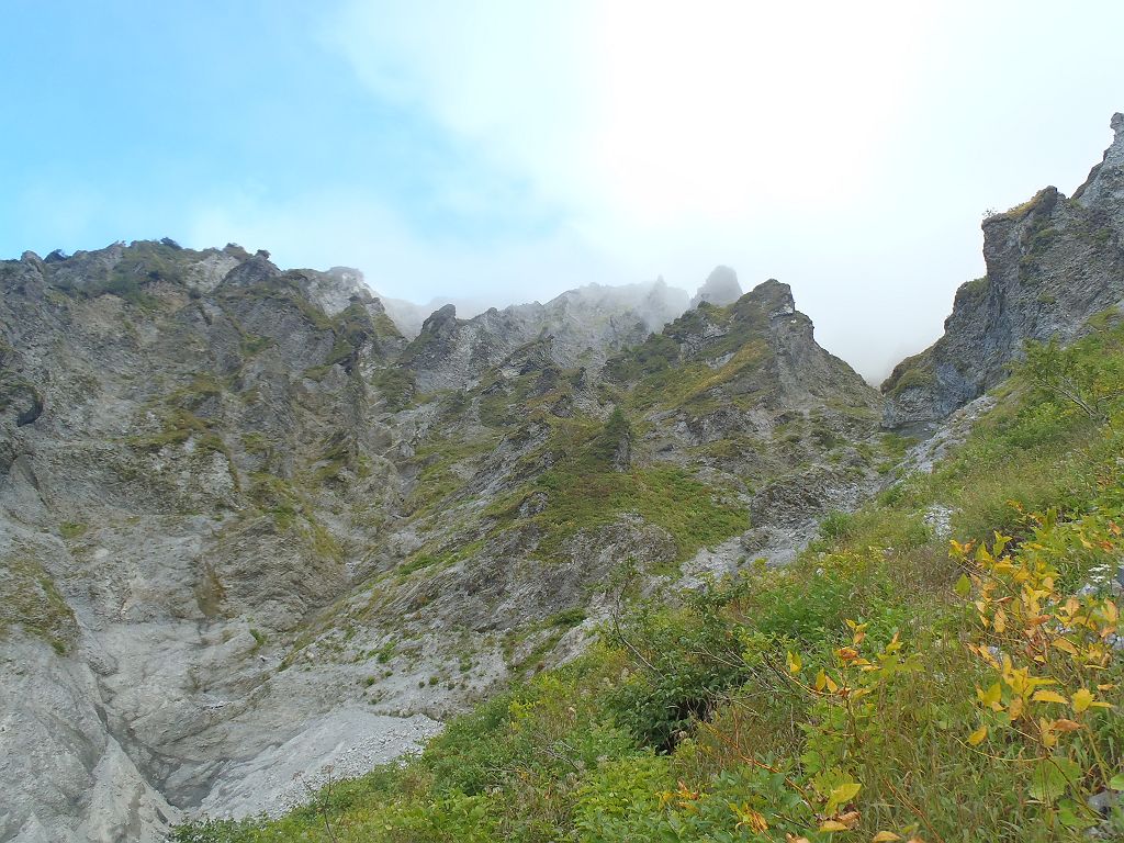 本当は北ア予定していましたが、天気がどうも微妙だったのと親類の事情もあり、以前から気になって行きたかった鳥取県の大山の三の沢ルートにしました。行きはガスりましたが、ガスった大山の稜線や岩はまるでハリーポッターのような感じでした。以前の伯耆大山縦走(ユートピア~剣ヶ峰~弥山の縦走)に比べると今回のルートは簡単に剣ヶ峰にたどり着けましたが、そこまで怖かったというイメージはなかったです。S嬢を剣ヶ峰に連れて行くか考慮しましたが、思ったほど、危険なところが少なく、スイスイ着いてきました。そしてS嬢いわく双門ルートのほうが難易度が高く怖かったらしいです(ルートに関しては注意事項も確認ください)。
