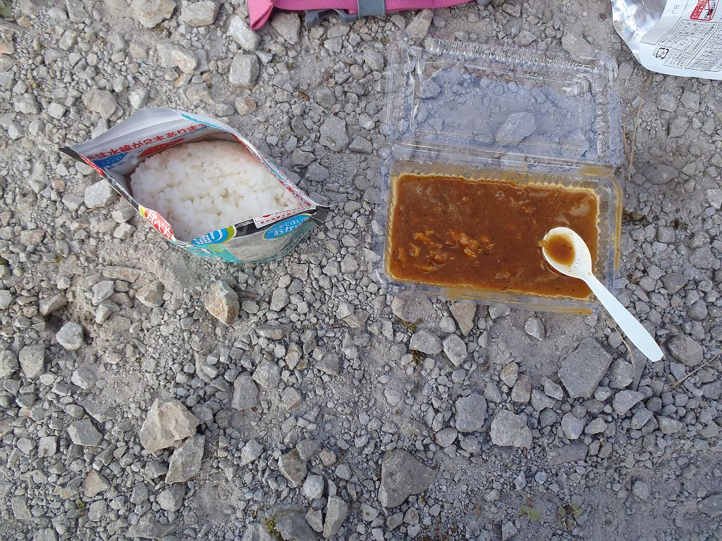 面倒なのでカレーもいれて食べる。ピリッと辛いが山でのカレーはやっぱ美味しい!