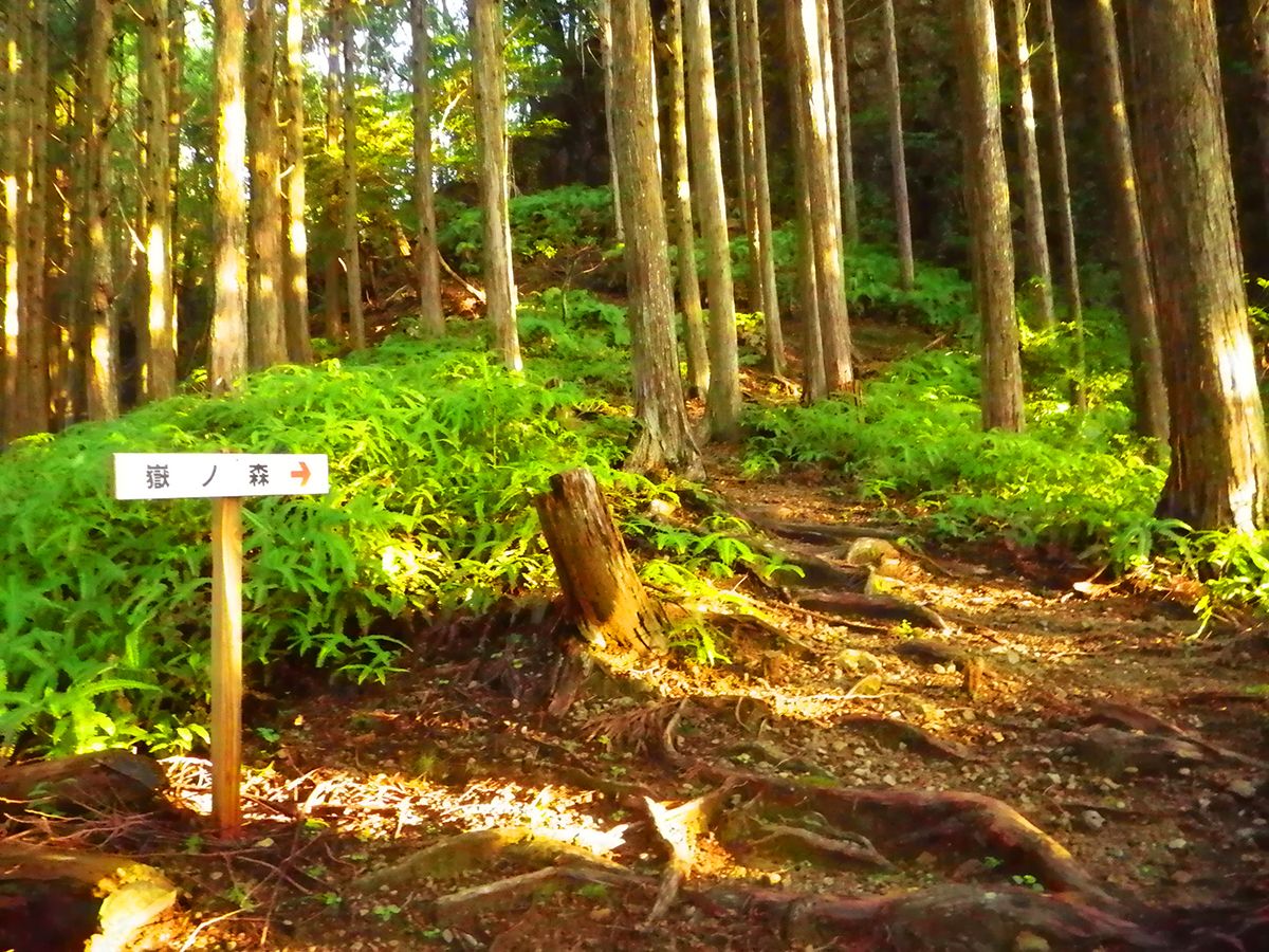 嶽の森と書かれた道標に従ってこの坂を上がっていく