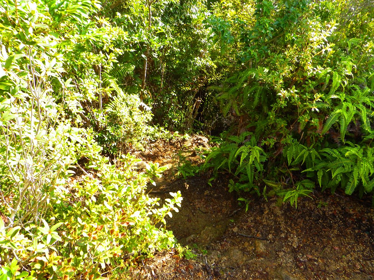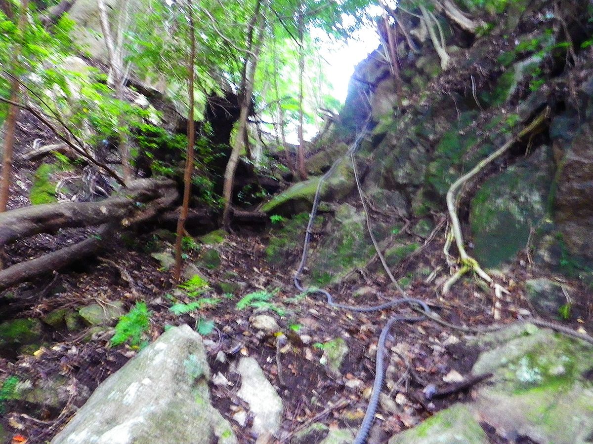 ここで雄岳と雌岳のコルへ登っていく。ここだけはロープがあって岩場の登りになっている