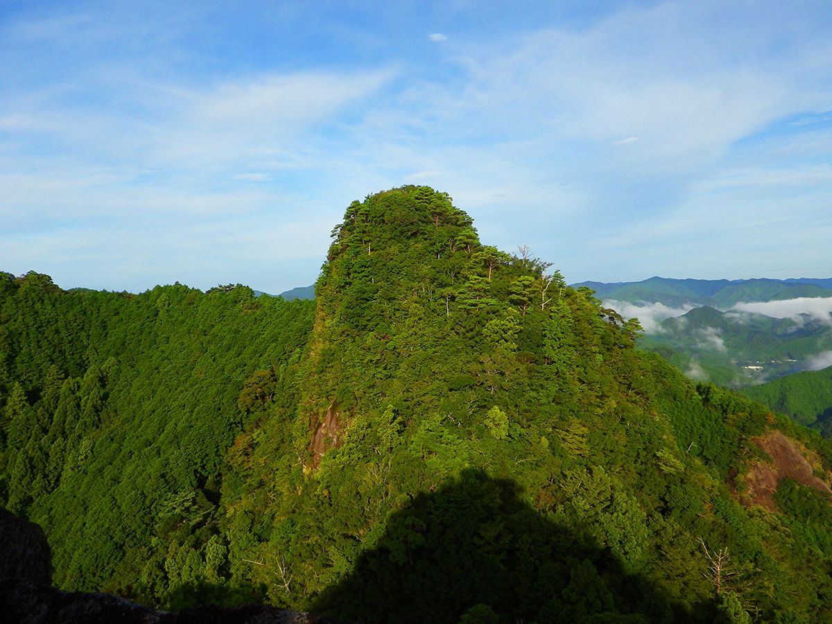 次に登る嶽ノ森山の山頂(雄岳)のピークがよく見える