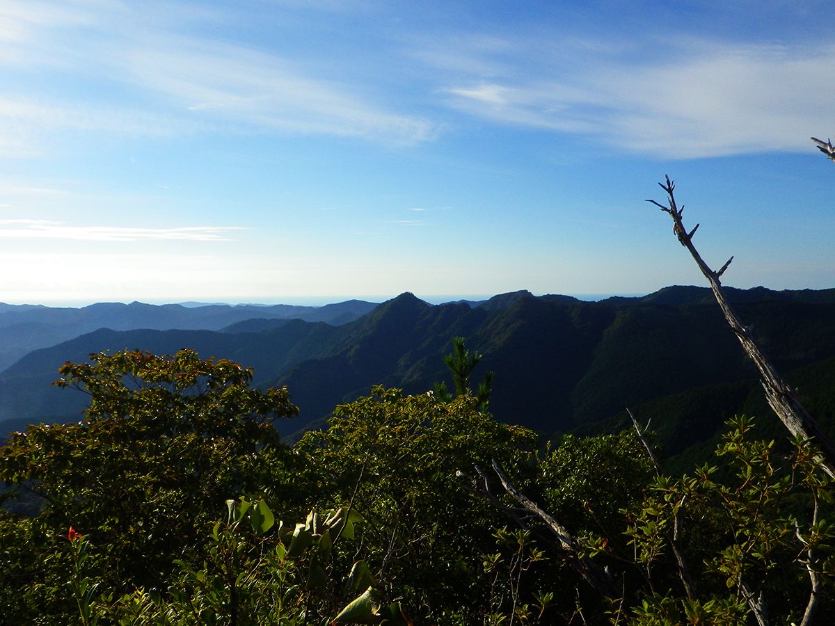 嶽ノ森山の山頂からのわずかな展望。向こう側は海が見えてるんだけど写真ではわかりにくいかも