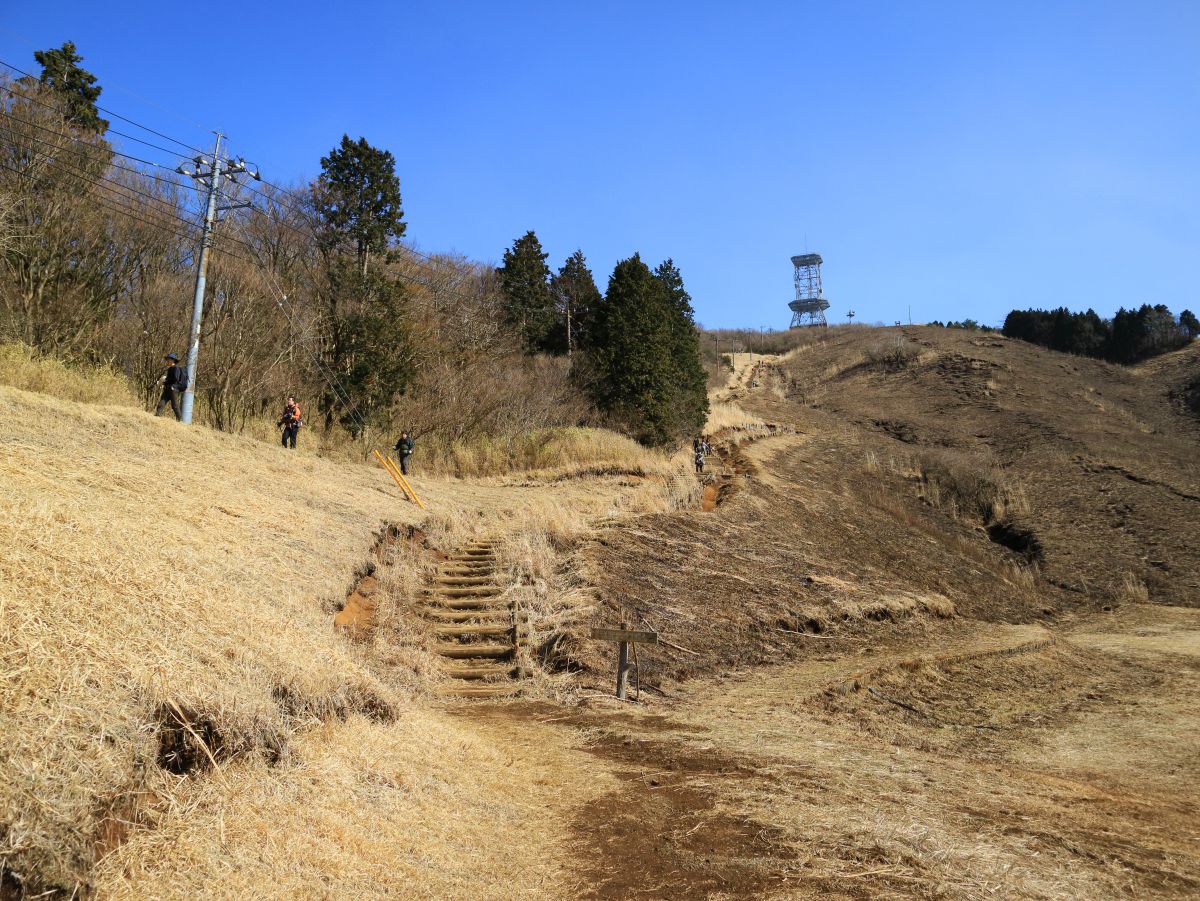 この階段は段差があって登りにくい。階段の端に踏み跡があることから、この段差なので階段を無視して登っている人もいるんだろう