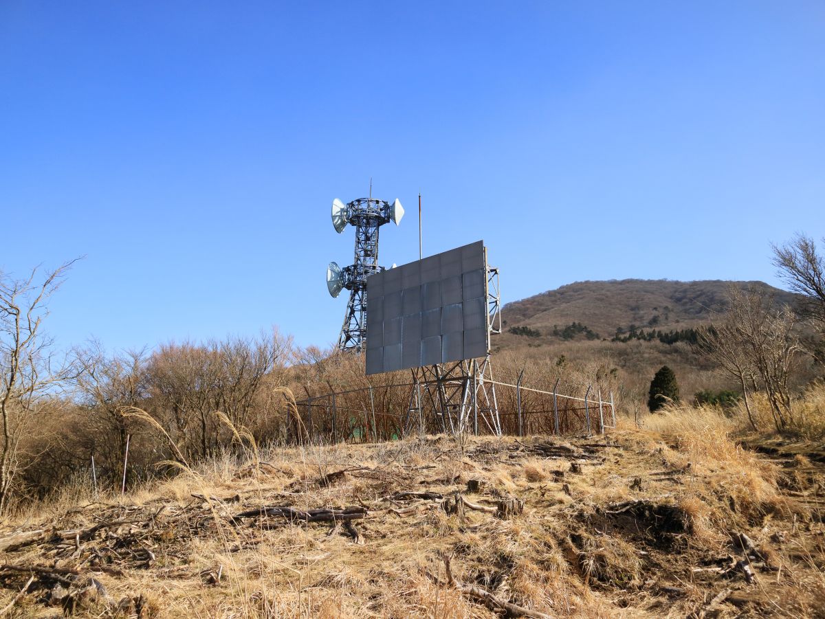 途中で反射板があった。方角的に右奥の山のピークまで登らないといけないっぽい
