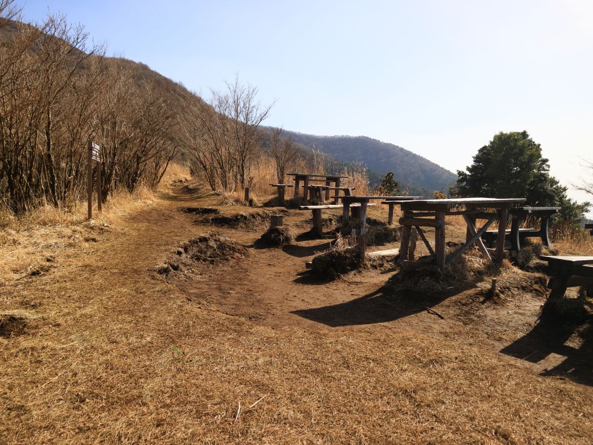 馬の背見晴台まで登ってきた。ここで休憩所があってベンチとテーブルがあった
