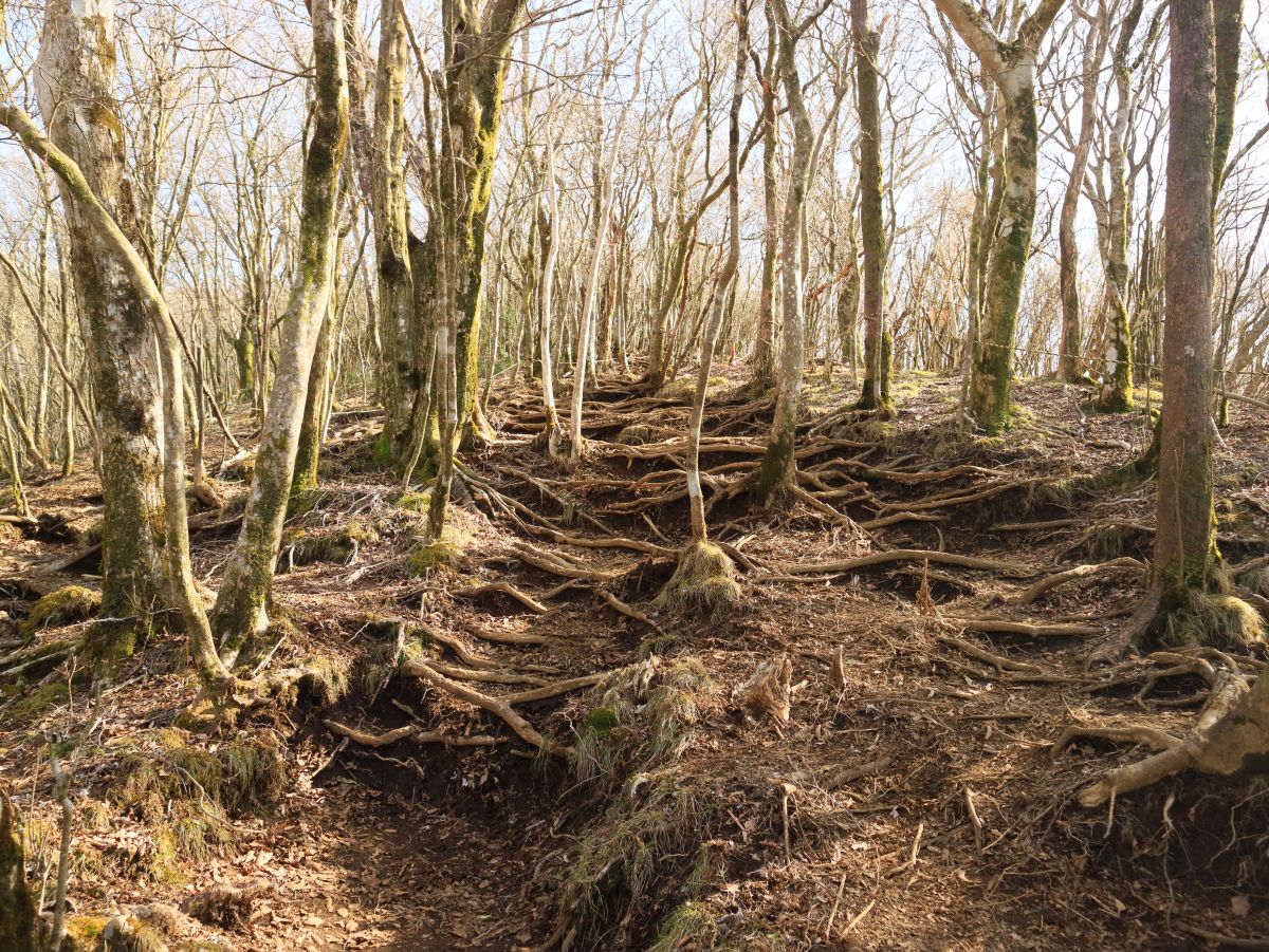 気が付くと樹林帯に入って木の根がある登りになる。この付近からひたすらこういう登りになる
