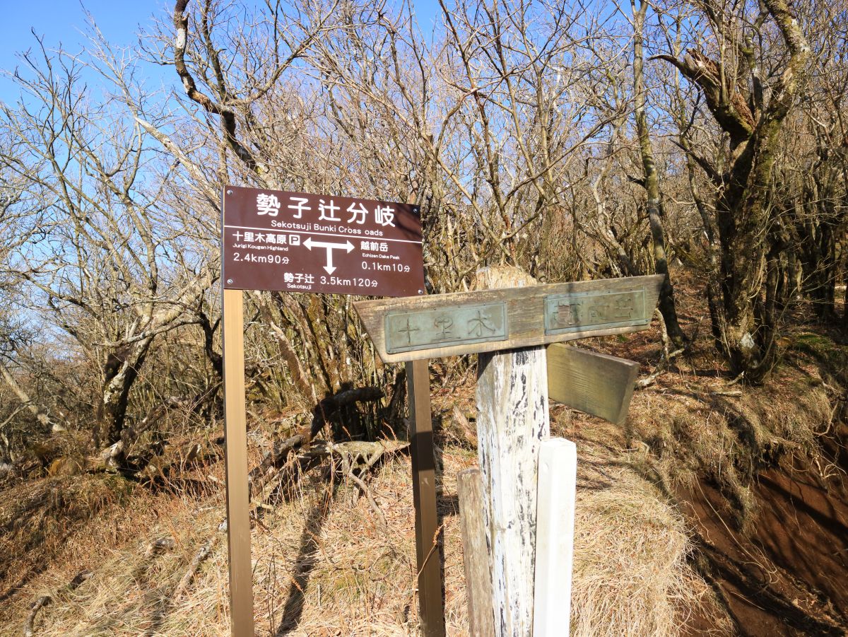 勢子辻分岐まで登ってきた。あと0.1kmで10分だけど、ここからがまだ少し登りが続く