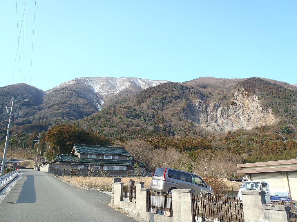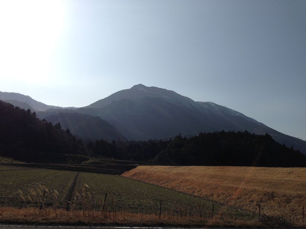 帰り、車から藤原岳を望む