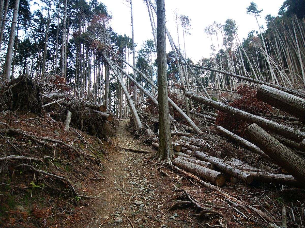 かなりの倒木地帯。これは台風でこうなったのかな!?