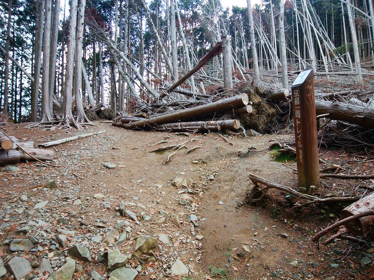 ここで京都一周トレイルの分岐。曲がらず直進していく