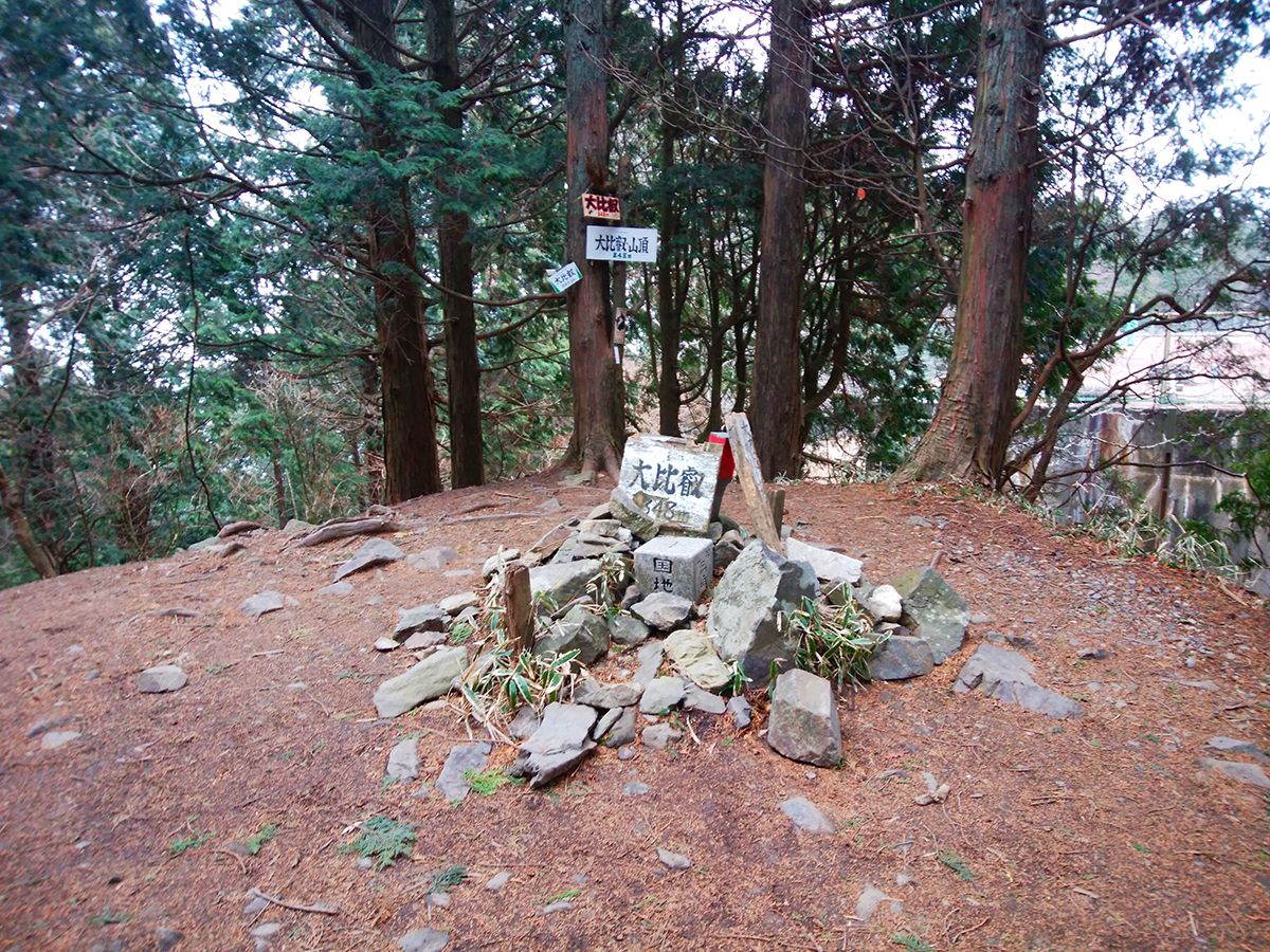 大比叡山頂(848.3m)に到着。山頂は何もないが立派な三角点があった。夜景撮影しないので、ここで少し休憩してさっさと下山することにした