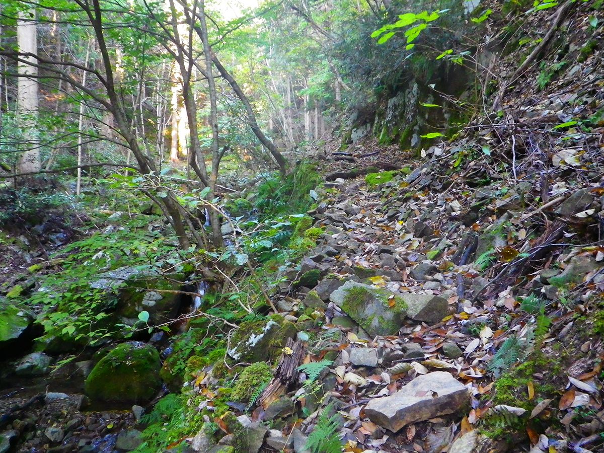 ここで近畿自然歩道と合流して沢筋の道になる