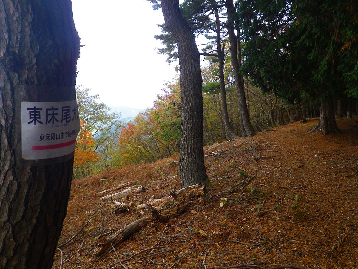 ここから東床尾山への登りがはじまる。落ち葉で登りにくい。そして、この先でちょっとしたアップダウンがあるんだけどね