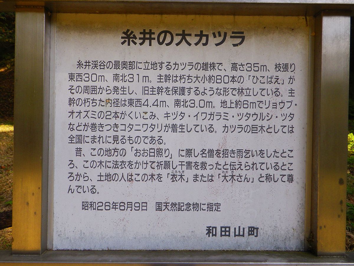 糸井の大カツラに関するうんちくが書いてある看板があったので撮影しておいた